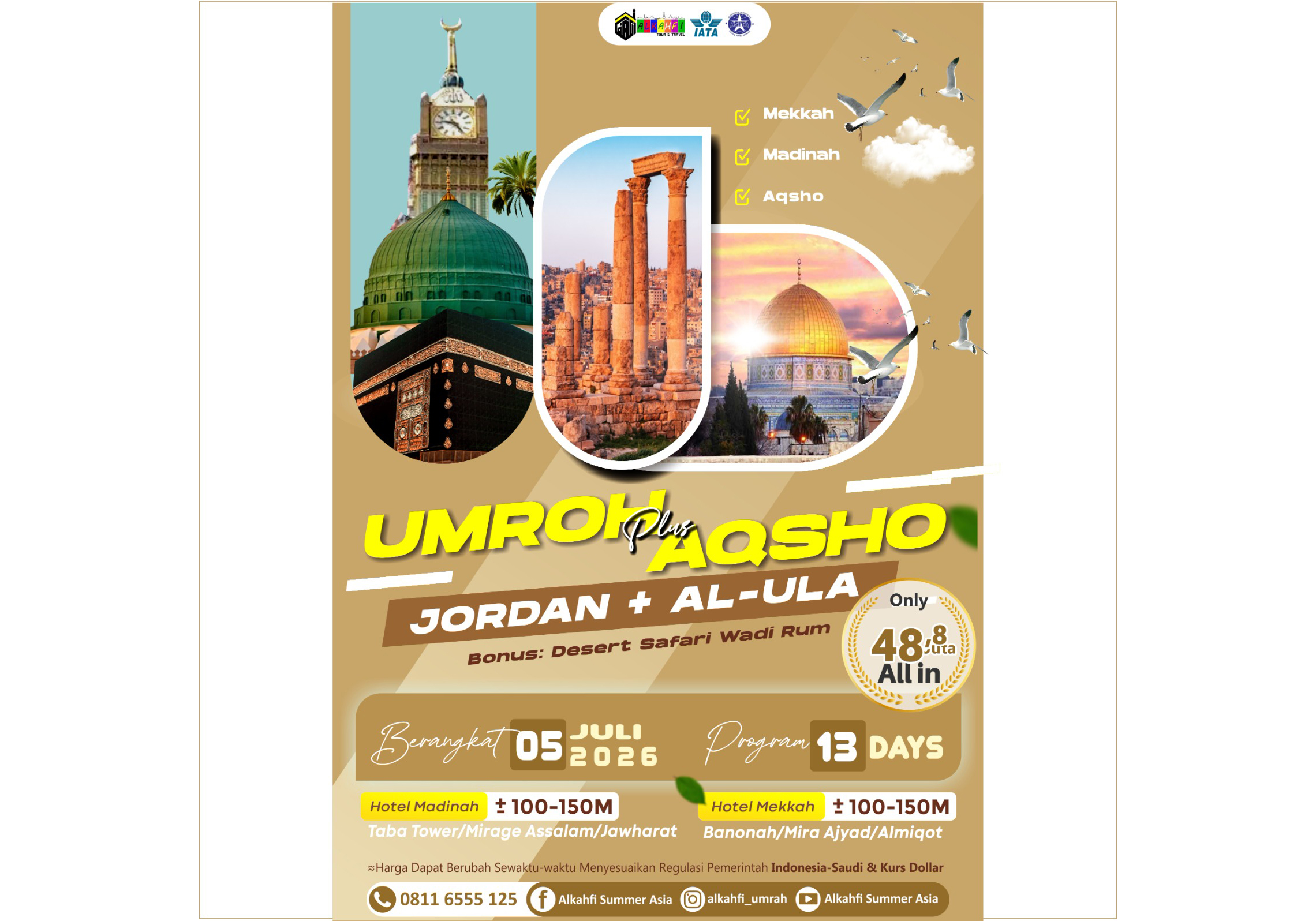 Segera amankan seat Anda dan wujudkan perjalanan umroh penuh makna dengan Umroh Plus Aqsho bersama Alkahfi Summer Asia Medan Sumatera Utara
