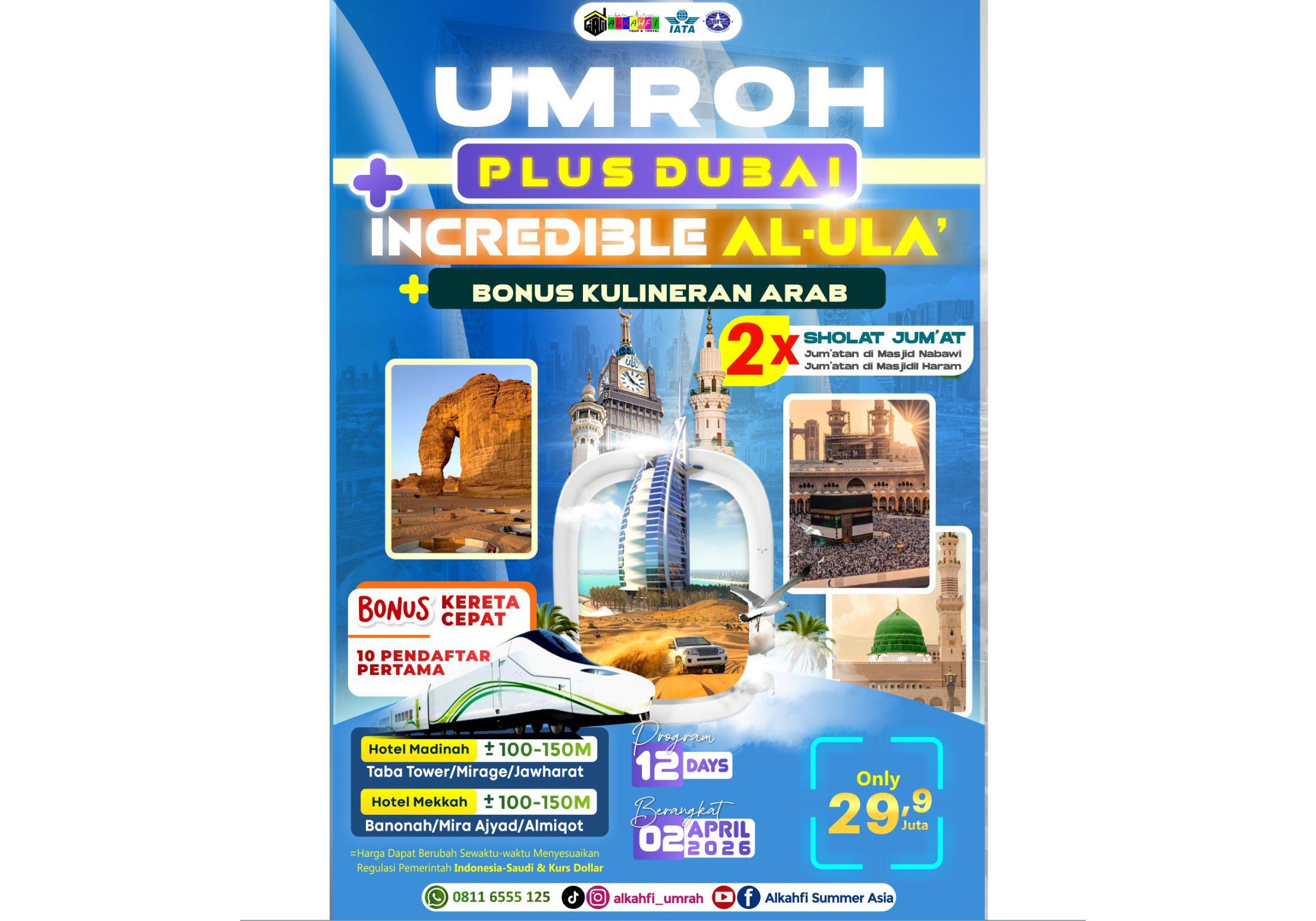 Segera daftarkan diri Anda bersama Alkahfi Tour & Travel Medan Sumatera Utara dan wujudkan umroh plus Dubai & Al Ula yang nyaman, aman, dan berkesan.